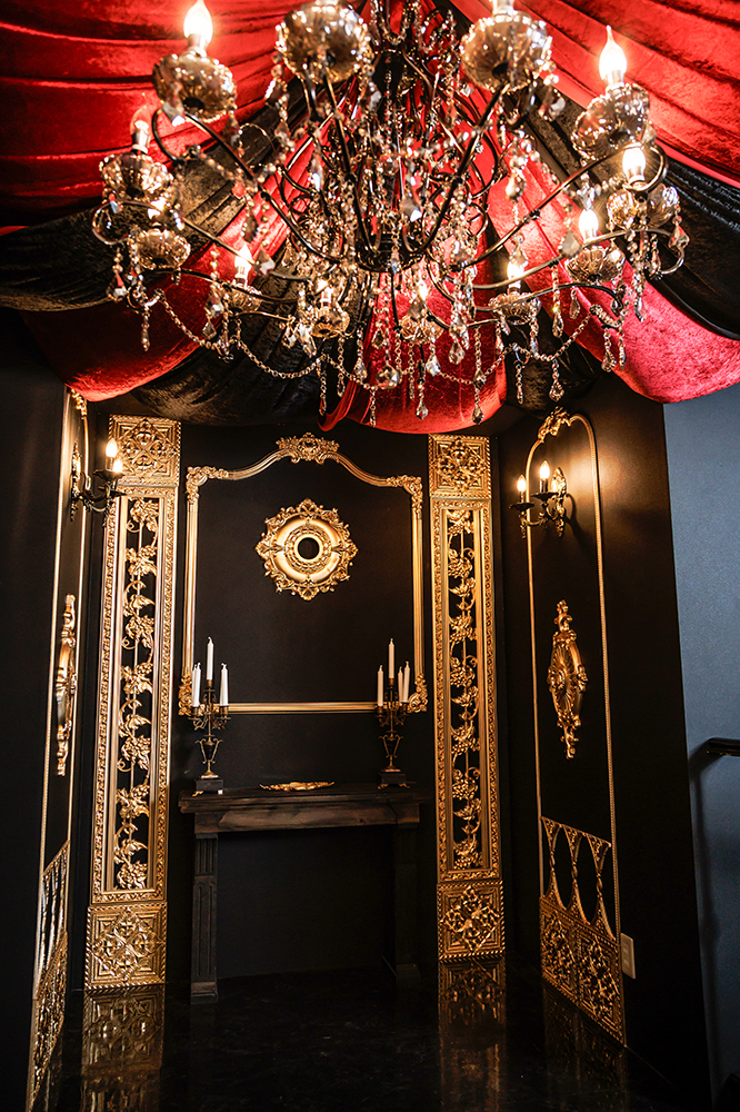 黒を基調とした重厚な家具や装飾、落ち着いた照明が、深みのある雰囲気を作り出します